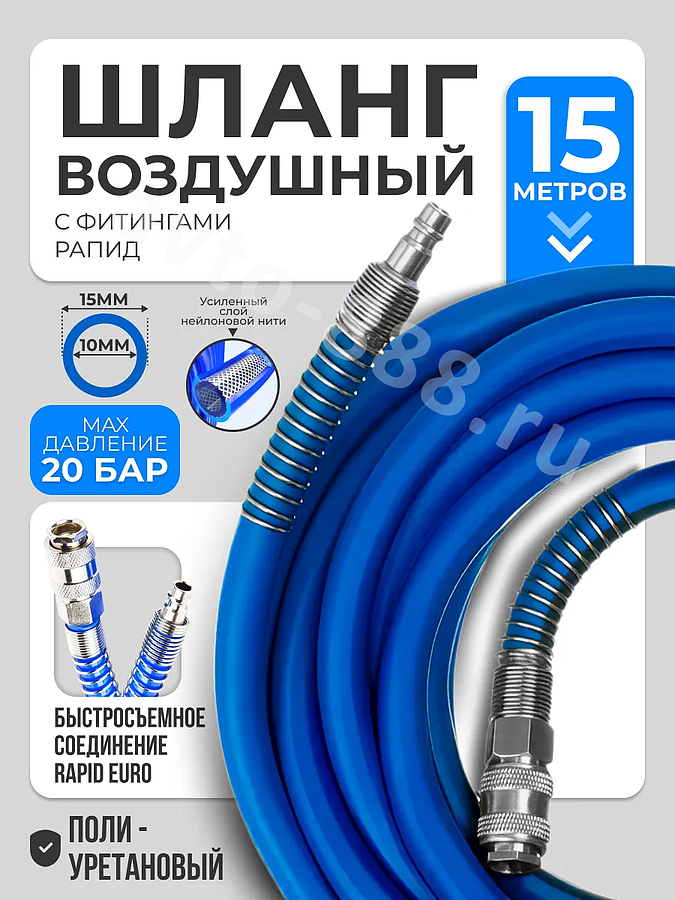Шланг для компрессора быстросъемный 15м 10х16мм*3мм PU 13752 avto-888.ru