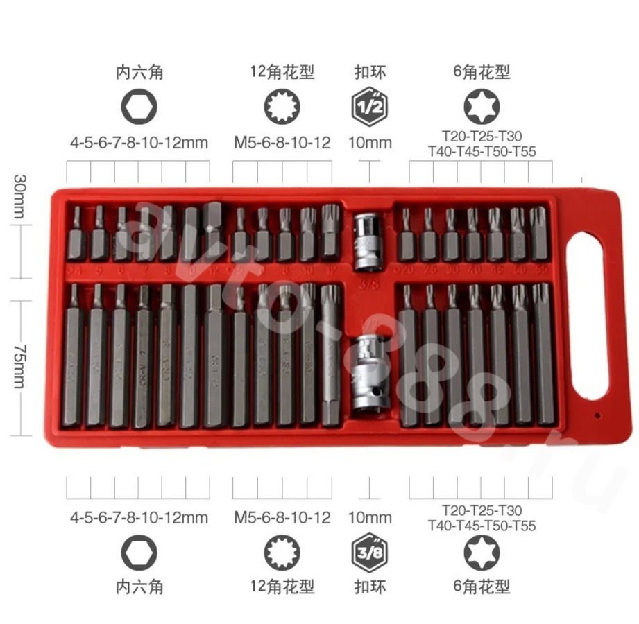 1. 40 штук шестигранной, торкс иНабор бит, включает 2 шт. хромированных ванадиевых 3/8 дюйма и 1/2 дюйма гнезда привода. 2. Изготовлен из легированной стали для высокой прочности и долговечности, высокого качества. 3. Все биты, за исключением нескольких больших бит, имеют одно и то же шестигранное основание диаметром 12 мм, что позволяет быстрее менять бит. 4. Каждый бит имеет свой размер, отпечатанный на самом бите, что позволяет легко идентифицировать их после того, как вы удалили горстку из чехол. 5. Все детали хорошо упакованы в выдувную формованную чехол для удобного хранения и транспортировки, а чехол для хранения отображает размеры бит рядом с каждым корпусом. Спецификация: Материал: углеродистая сталь Размер коробки: 32x15.2x 3 см/12.59x5.98x1.18' Примечание. Возможны отклонения в 1-3 мм вследствие измерений вручную. Из-за различных дисплеев и разных светильник изображение может не отображать фактический цвет товара. Спасибо за понимание.