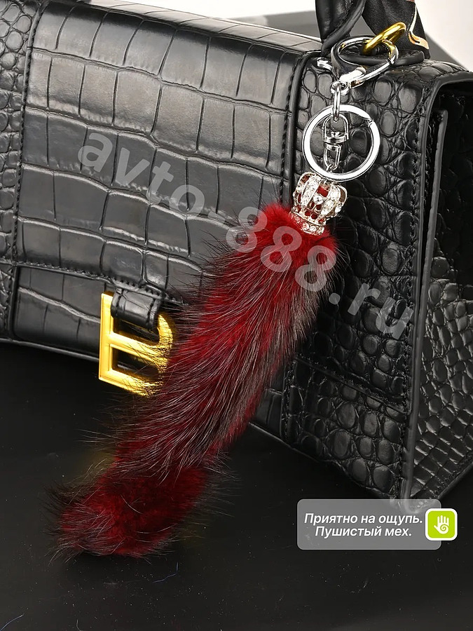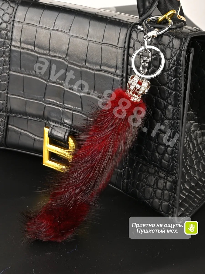 Брелок-карабин хвост норки (корона бордовый) ACS-BRKL-0307 avto-888.ru
