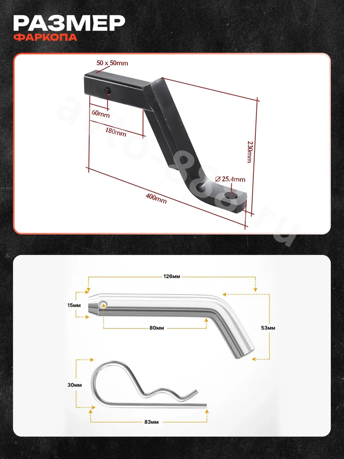 Геометрия: Общая длина 400 мм и вертикальный перепад 230 мм позволяют идеально выровнять прицеп относительно горизонта.