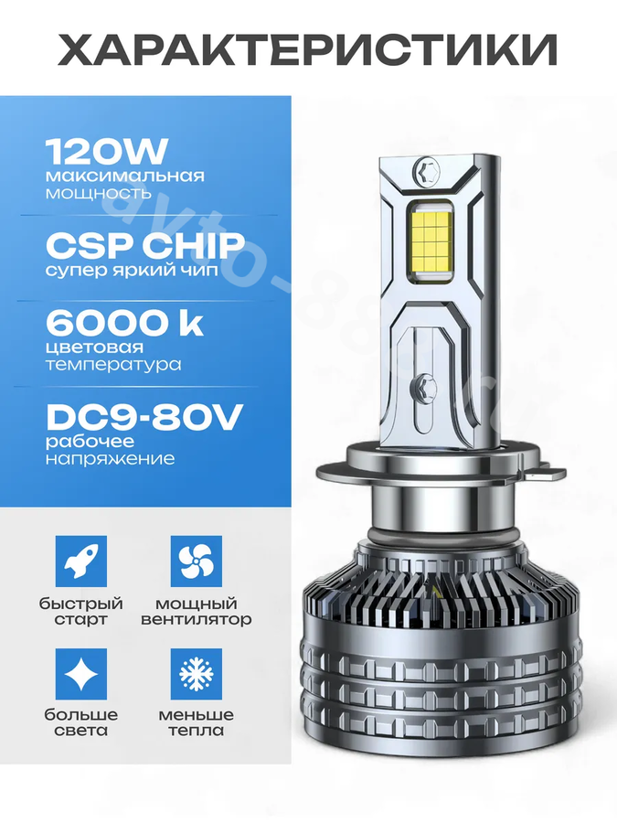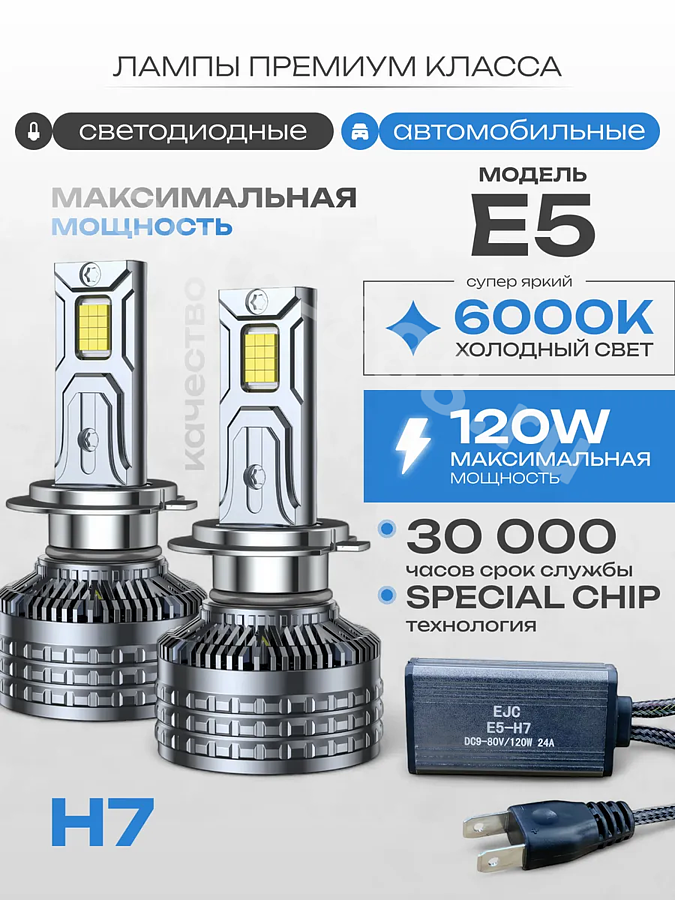 Автомобильная лампа LED E5-H7 (2шт) 12v/24v E5-H7 avto-888.ru