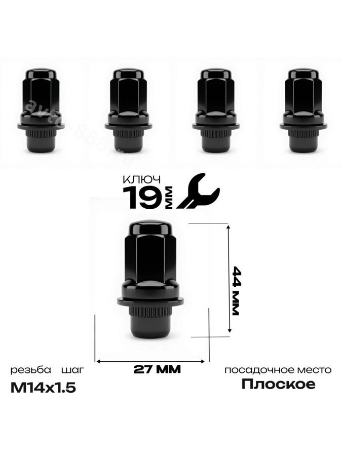 Гайка на колесо с шайбой большая HEX19,47M,14*1,5 (5шт) чёрный 13838 13838 avto-888.ru
