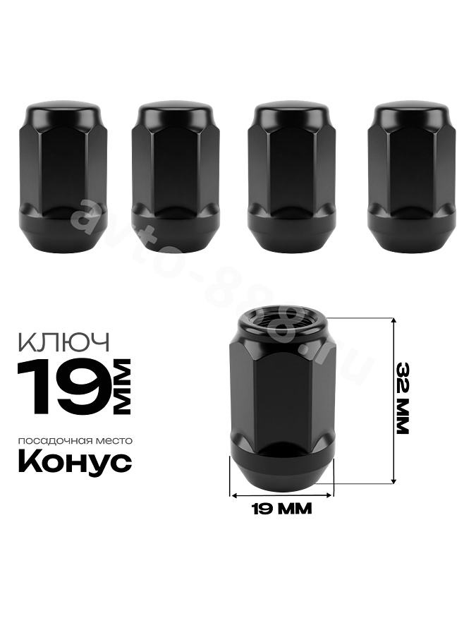 Гайка на колесо М12×1.5 конус (ключ 19) L35 черный (5шт) 14531 avto-888.ru