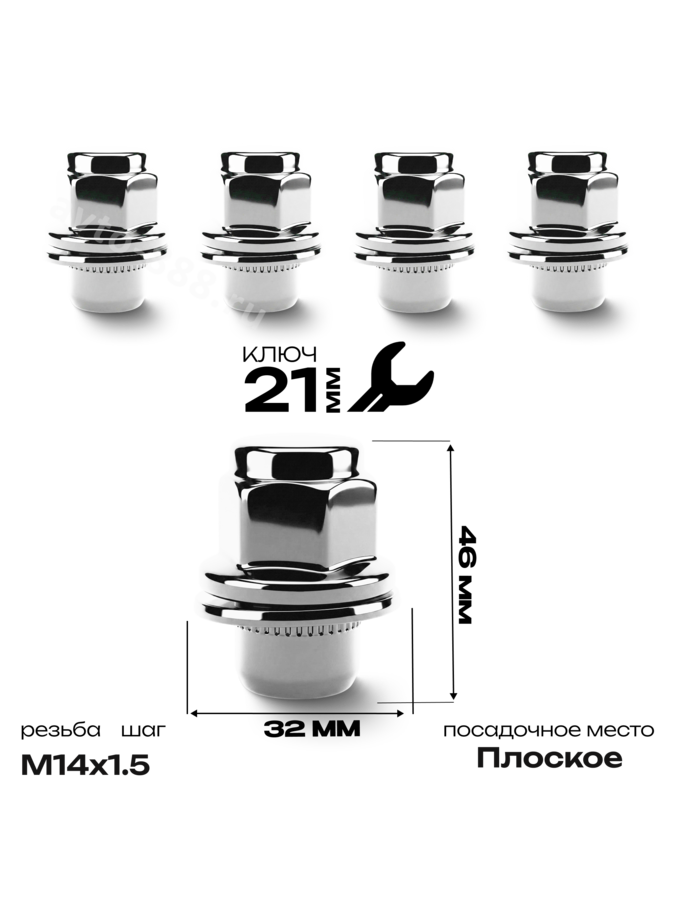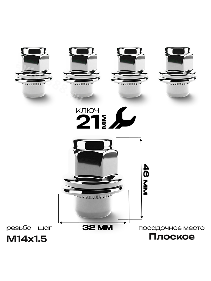 Гайка на колесо М14×1.5 с прессшайбой (ключ 21) L49 хром (5шт) 4700 ACS-INSTR-4700