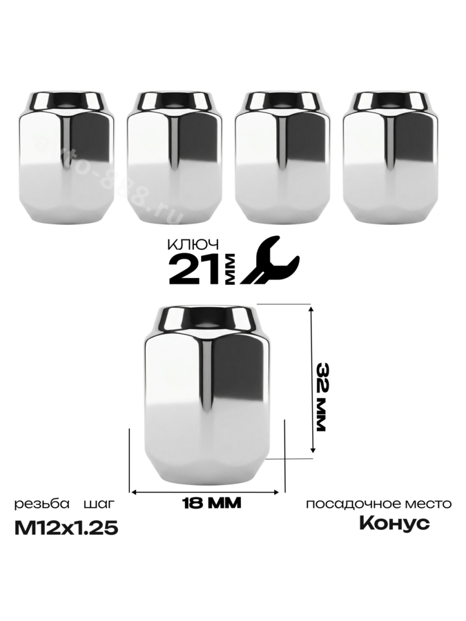 Гайка на колесо М12×1.25 конус (ключ 21) L35 хром (5шт) 1006L32 ACS-INSTR-1006L32 avto-888.ru