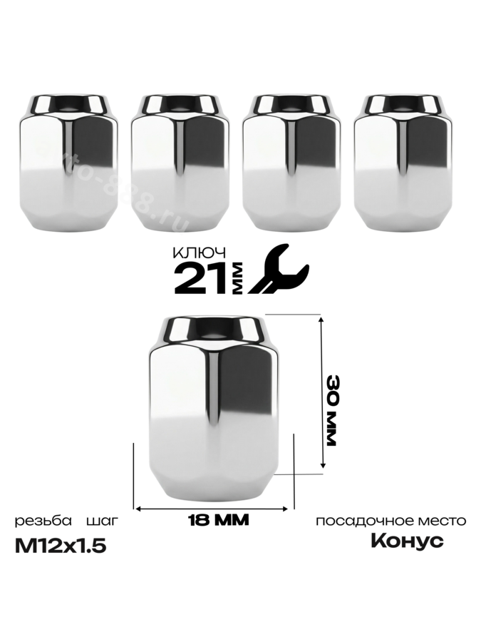 Гайка на колесо М12×1.5 конус (ключ 21) L32 хром (5шт) 1007SL30 ACS-INSTR-1007SL30