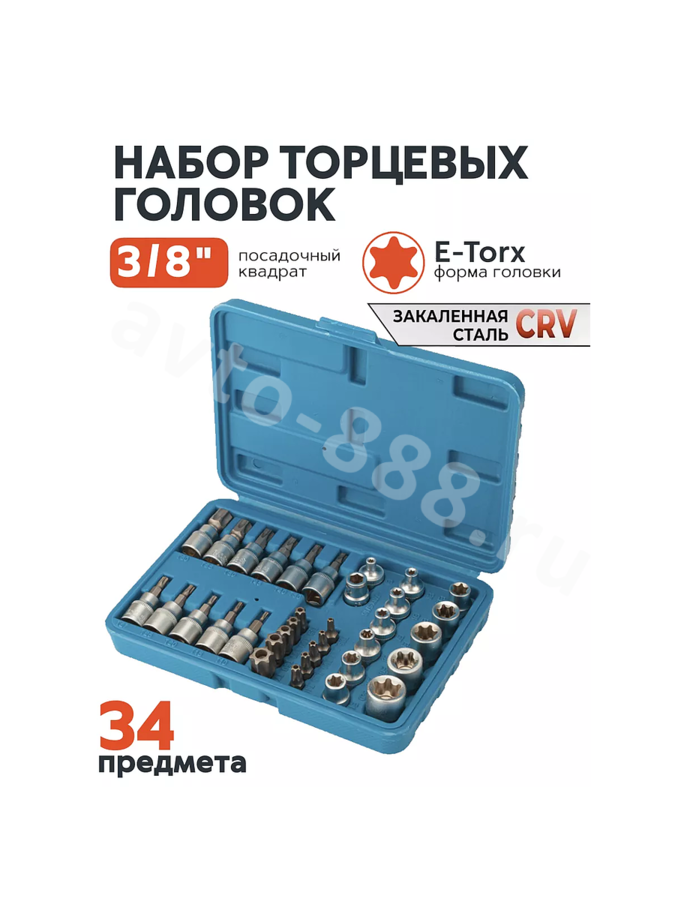Набор торцевых насадок E-Torx 34 предмета (синий) A6-E034002
