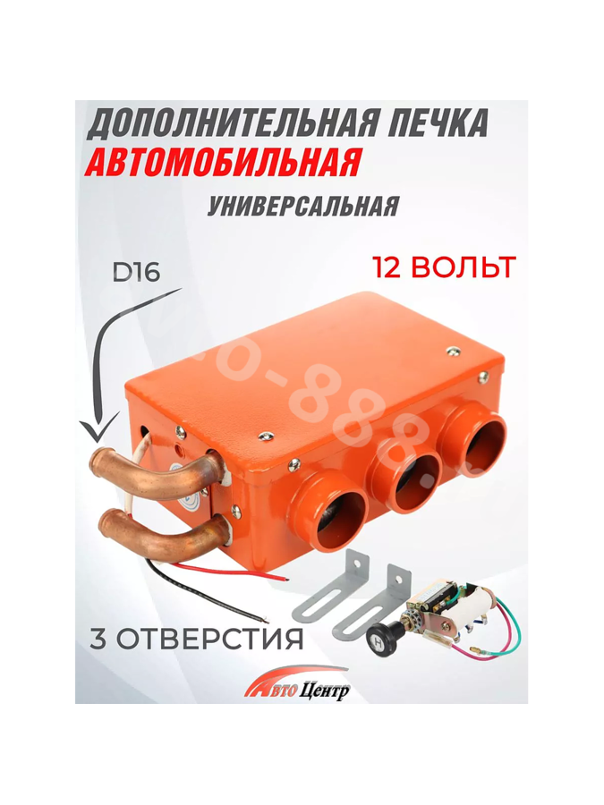 Автомобильная дополнительная печка, 12 вольт, 3 отверстия, универсальная, представляет собой устройство, предназначенное для обогрева салона автомобиля в условиях холодной погоды. Она подключается к автомобильной системе обогрева и работает от бортовой сети мощностью 12 вольт.Печка оборудована 3 отверстиями для подачи горячего воздуха в салон автомобиля. Эти отверстия расположены таким образом, чтобы обеспечить равномерное распределение тепла внутри кабины.Дополнительная печка является универсальной, что позволяет ее использовать с различными моделями и марками автомобилей. Это удобно, так как водители могут устанавливать такую печку на свой автомобиль независимо от его марки или модели.Универсальные автомобильные дополнительные печки обычно имеют различные режимы работы, такие как нагрев воздуха или размораживание стекол. Также они обладают различными функциями, включая автоматическое отключение при перегреве или низком уровне заряда аккумулятора.Дополнительные печки предоставляют возможность водителям и пассажирам получать комфортное тепло в автомобиле в условиях низких температур. Они особенно полезны в холодных климатических условиях или при длительных поездках в места с холодной погодой.
