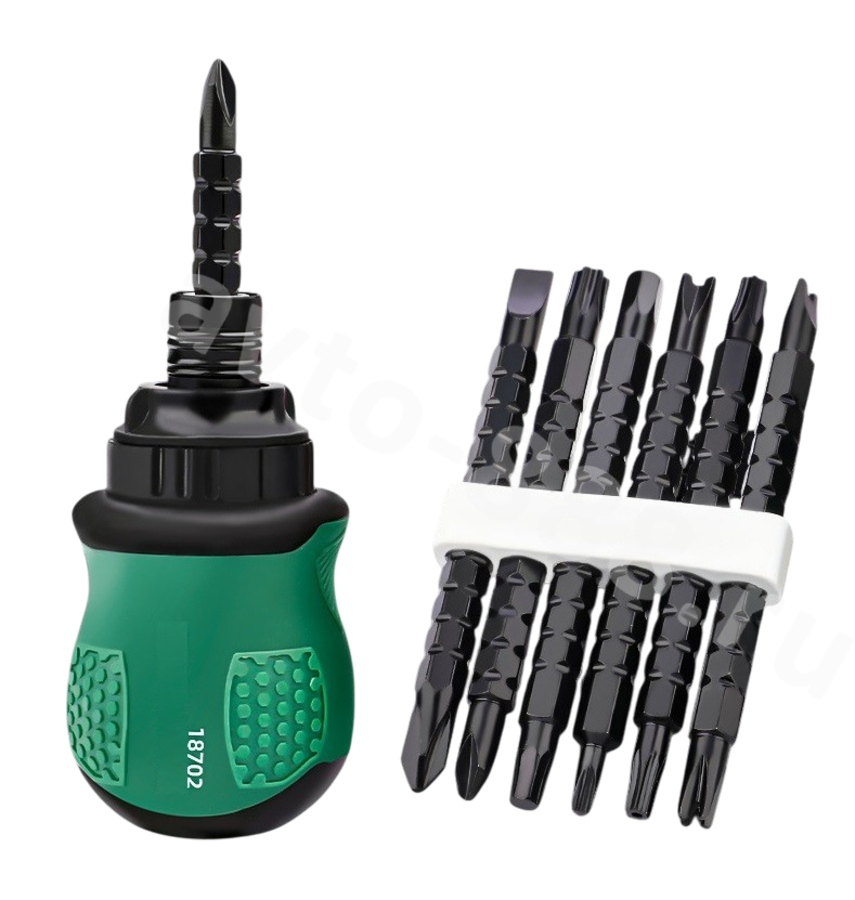 18702 Набор трещетка отвёртка маленькая короткая 18702 avto-888.ru