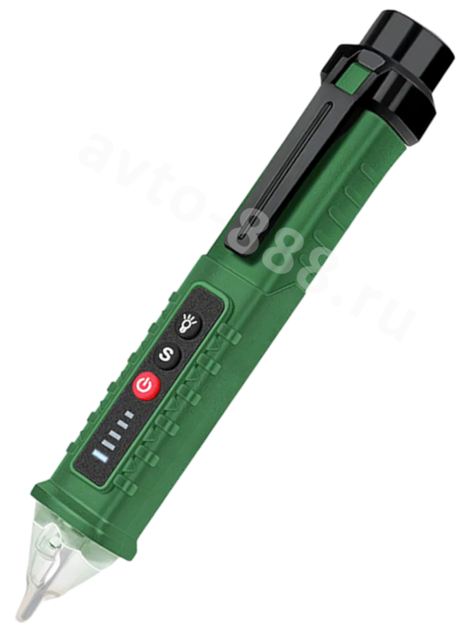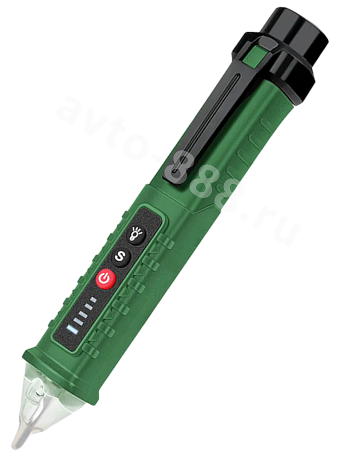 Диапазон измерения напряжения 12v---1000v Встроенный датчик, при обнаружении переменного напряжения поблизости, заставит красный индикатор мигать и подаст звуковой сигнал.
