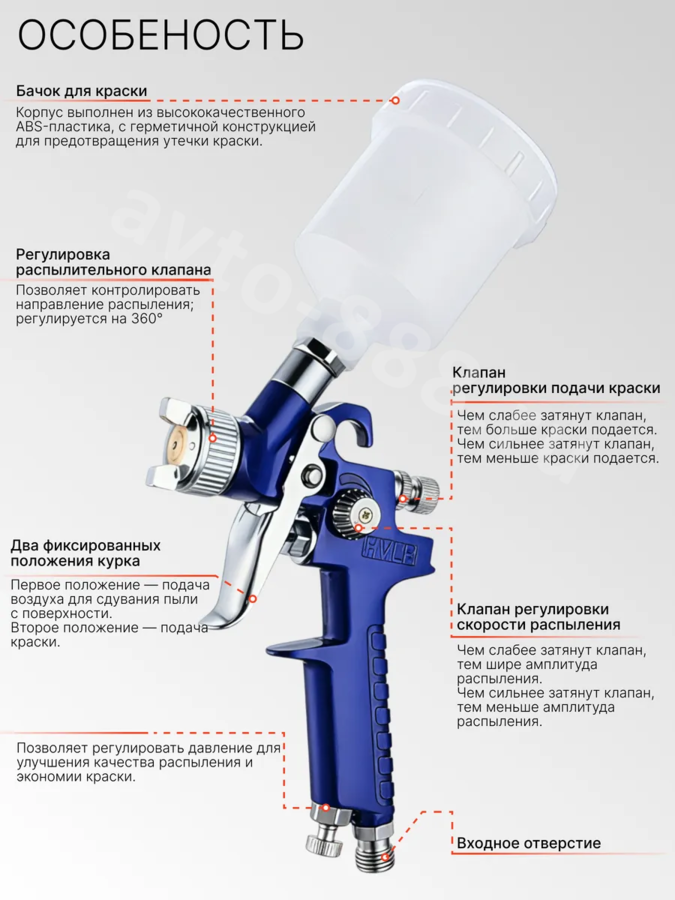 Краскопульт пневматический с верхним бачком MINI827 avto-888.ru