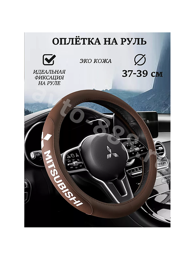 Оплетка на руль "MITSUBISHI" (М), коричневый ZE-11