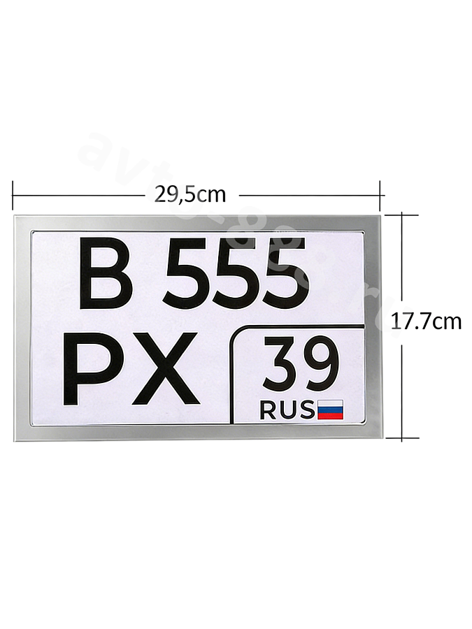 Размеры: 29,5 × 17,7 см (соответствует размерам российского регистрационного знака)