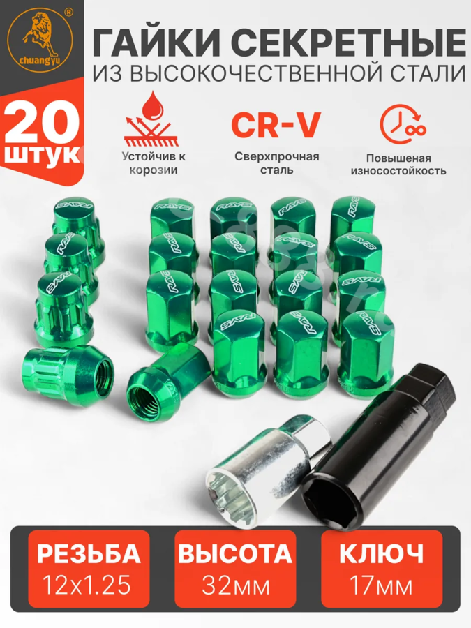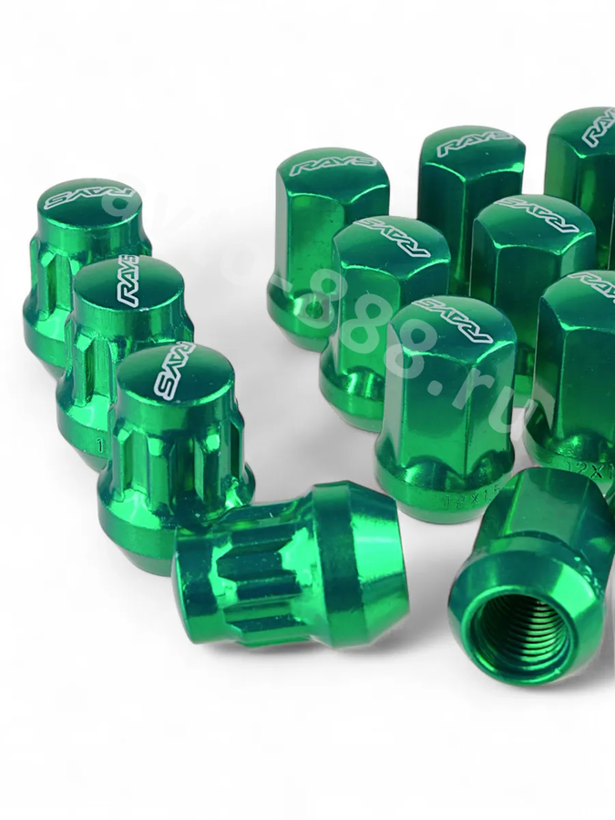 Секретки гайки RAYC 12*1,25 F450 (20 шт, высота 30 мм) зелёный 13789