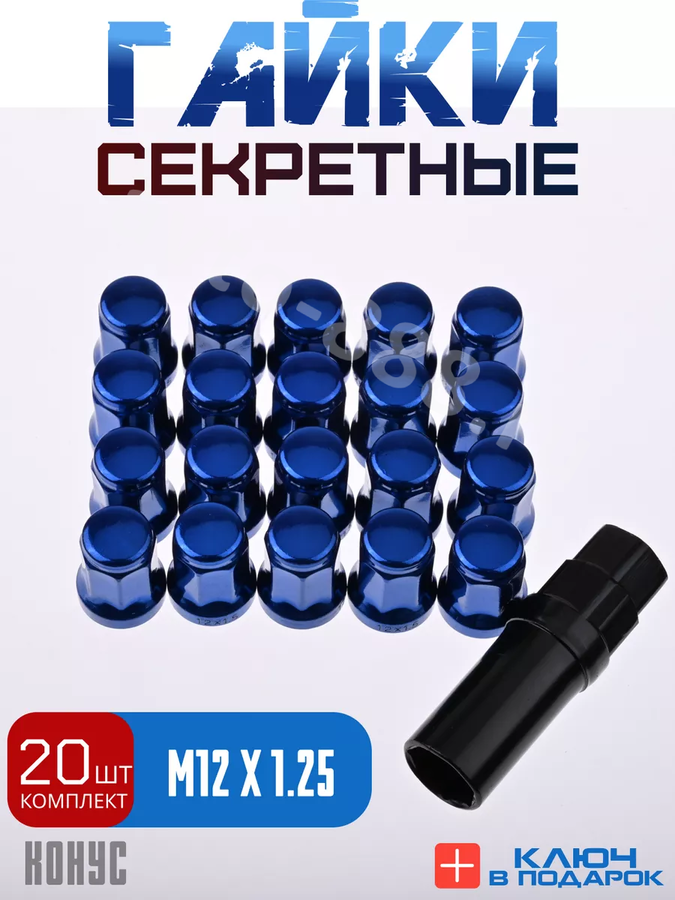 Секретки гайки 12*1,25 N042 (комплект 20 шт, ключ 17) синий ACS-INSTR1294
