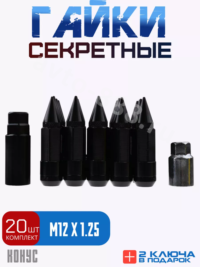 Комплект гаек-карандаш (лёгкие) R104 12*1,25 (20 шт, высота 55 мм) чёрные ACS-INSTR1083 Ч