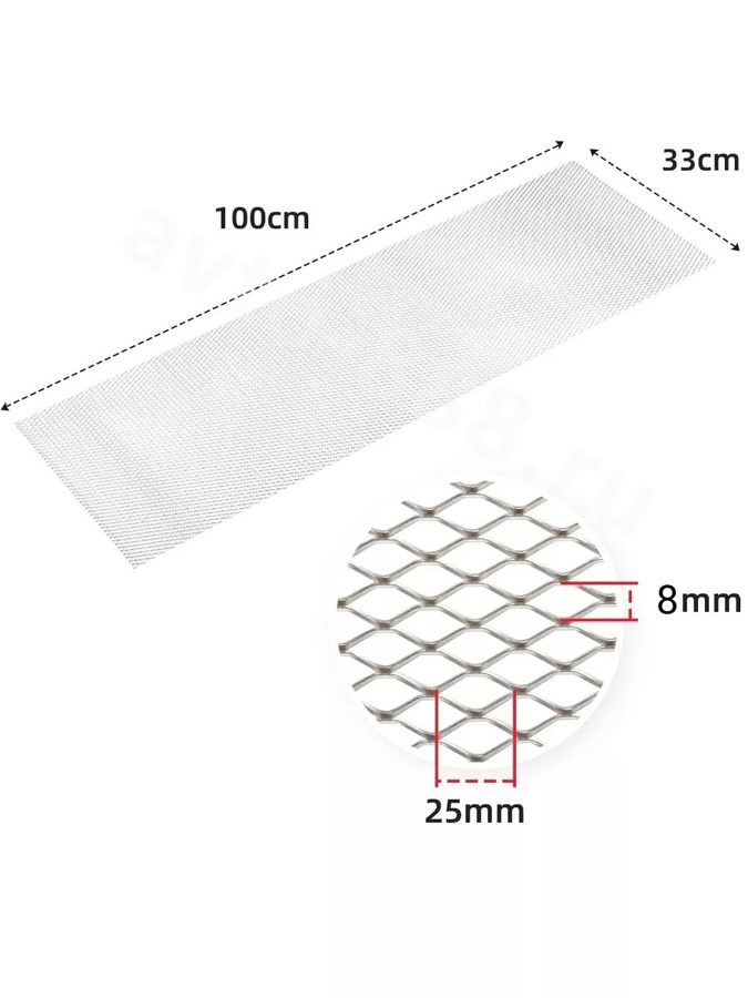 Сетка на решетку радиатора алюминиевая серебро крупная 1000*330 мм ячейка 8мм*25мм ACS-VNEL-SRAD05 avto-888.ru