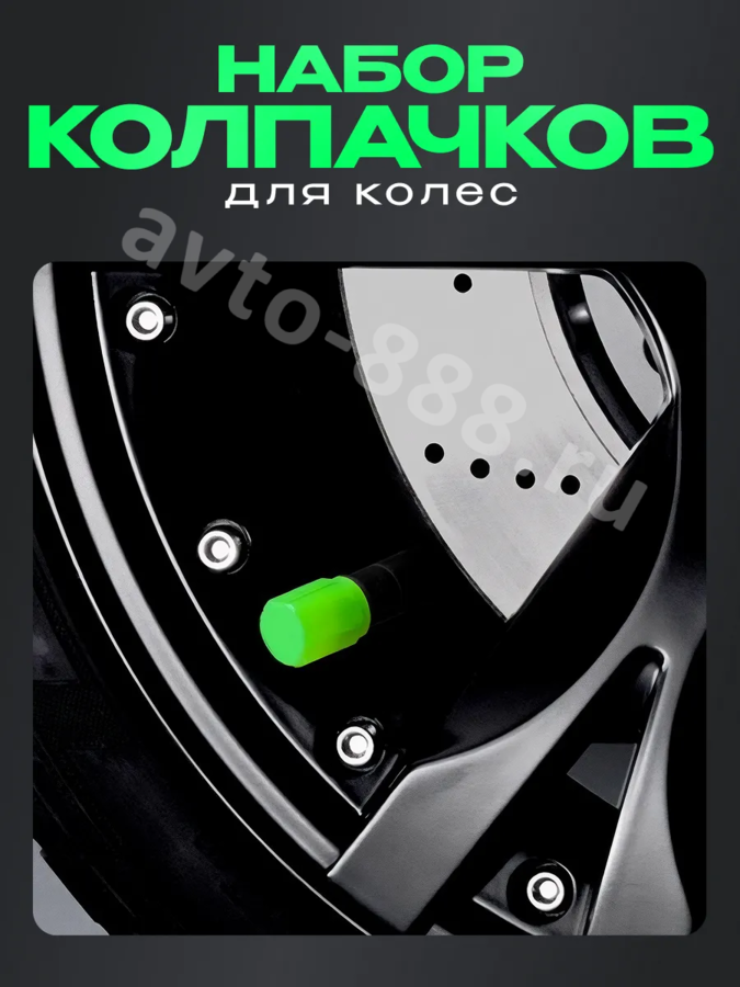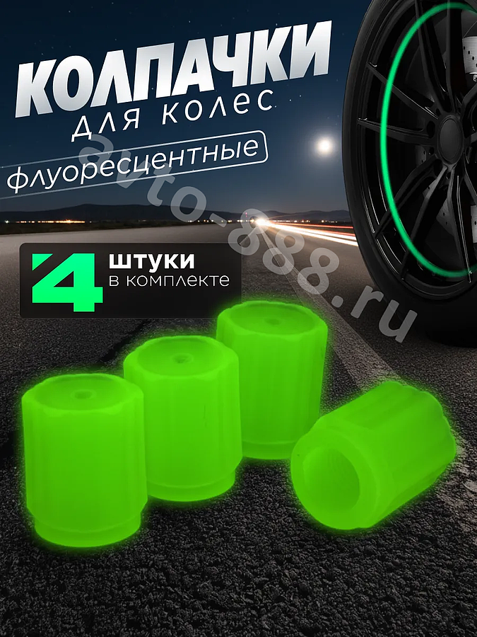 Колпачок ниппеля универсальный 4шт. светящийся зелёный ACS-SBK010 avto-888.ru