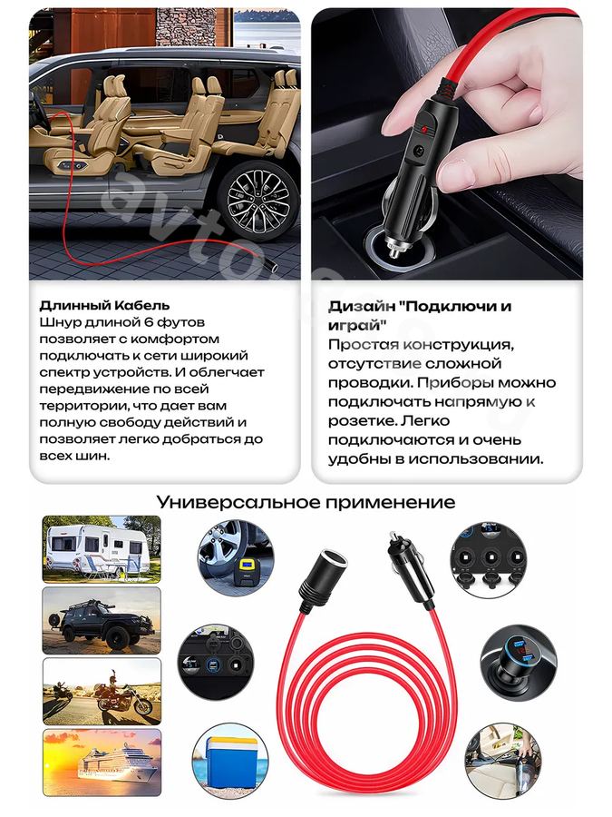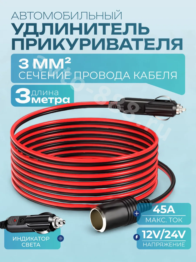 Удлинитель прикуривателя на 3 метра — это незаменимый аксессуар для любого автомобиля. Он позволит вам удобно использовать автомобильные приборы, такие как зарядные устройства, компрессоры и навигаторы, даже если розетка прикуривателя расположена неудобно. Длина кабеля 1.5 метра даёт вам свободу действий и позволяет подключить устройство в любом месте салона. Удлинитель совместим с любыми автомобилями, работающими от 12-24 вольт.